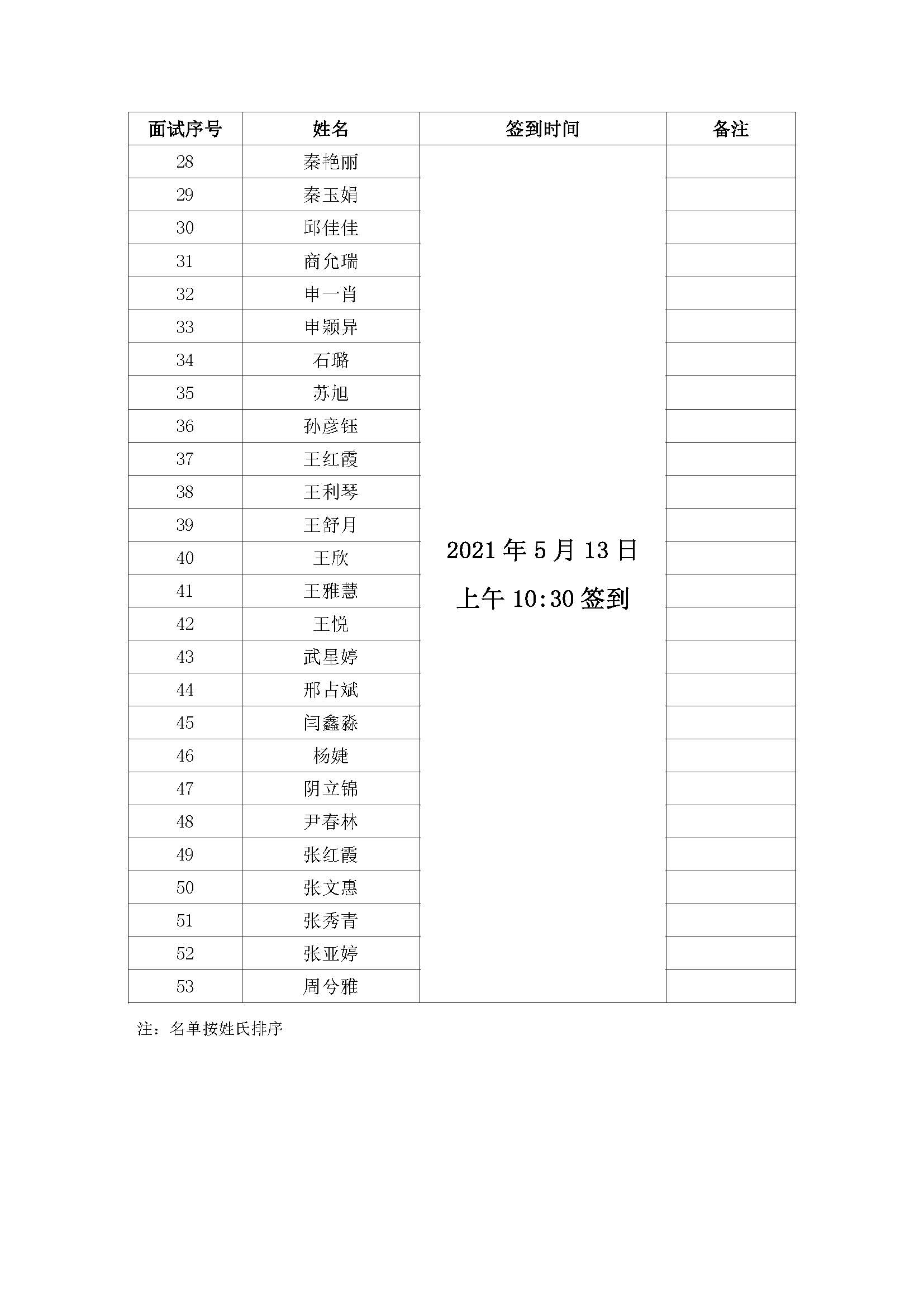 1、面試時間:2021年5月13日(周四)上午9:00。本次面試分為兩組,簽到時間不同,請各位考生自行查看附件表。